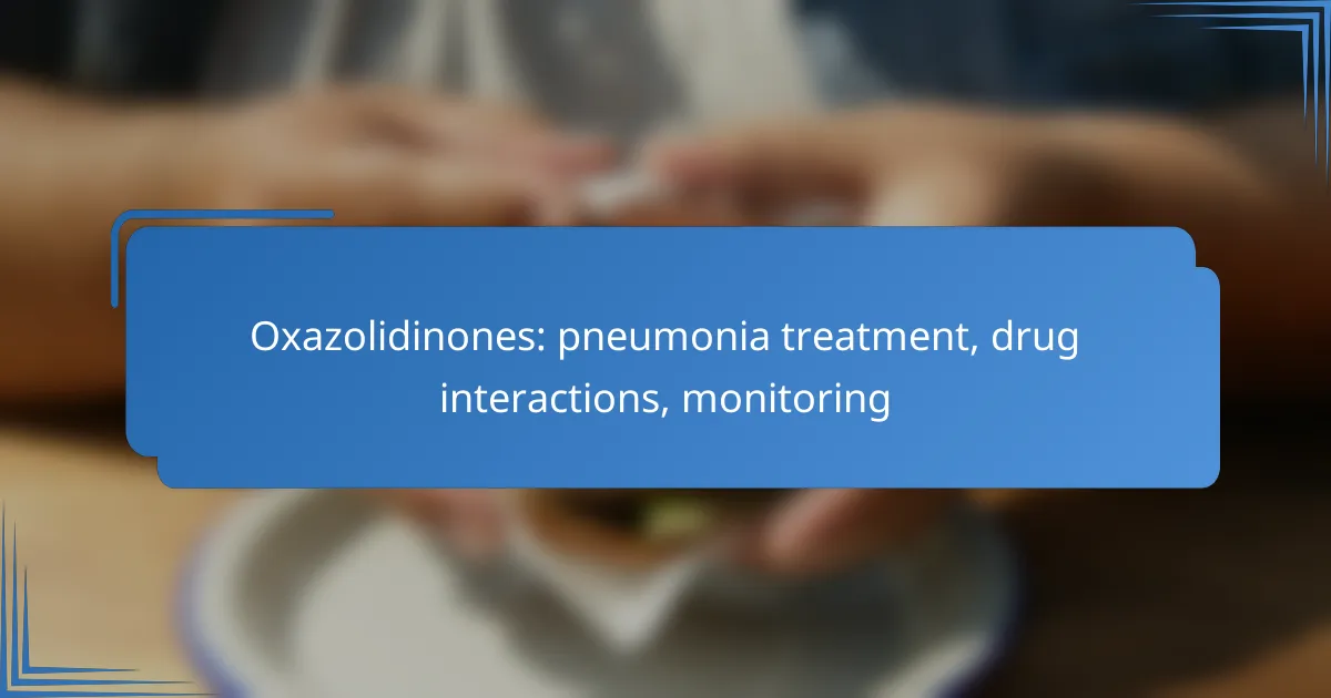 Oxazolidinones, such as linezolid and tedizolid, are potent antibiotics used to treat pneumonia caused by resistant bacteria, functioning by inhibiting bacterial protein synthesis. However, these medications can interact with other drugs, necessitating careful management to ensure safety and effectiveness. Regular monitoring of blood counts, liver function, and potential side effects is essential during treatment to optimize patient outcomes.